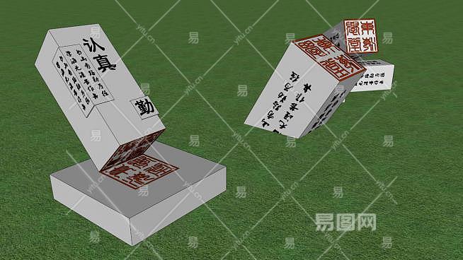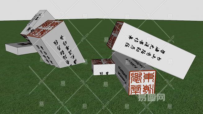 中式印章雕塑小品(3)SU模型下载_sketchup草图大师SKP模型