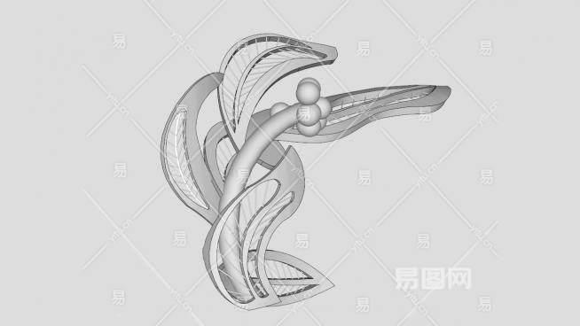 艺术学院校门萌发花朵雕塑SU模型下载_sketchup草图大师SKP模型