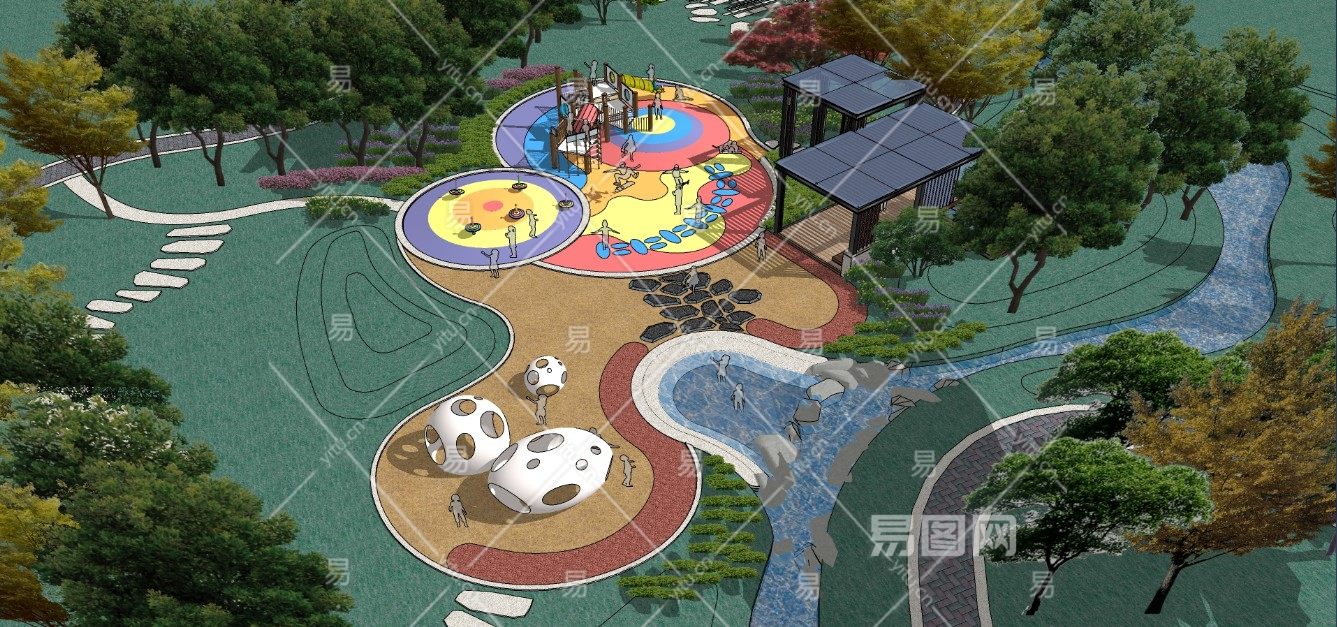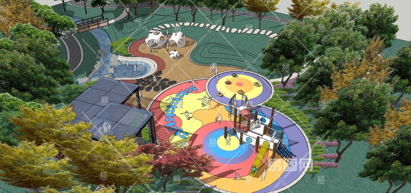 地产示范区儿童活动区木质滑梯廊架雕塑攀爬架汀步塑胶跑道