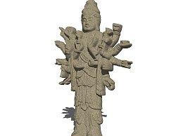 中式千手观音雕塑su模型,摆件草图大师模型下载