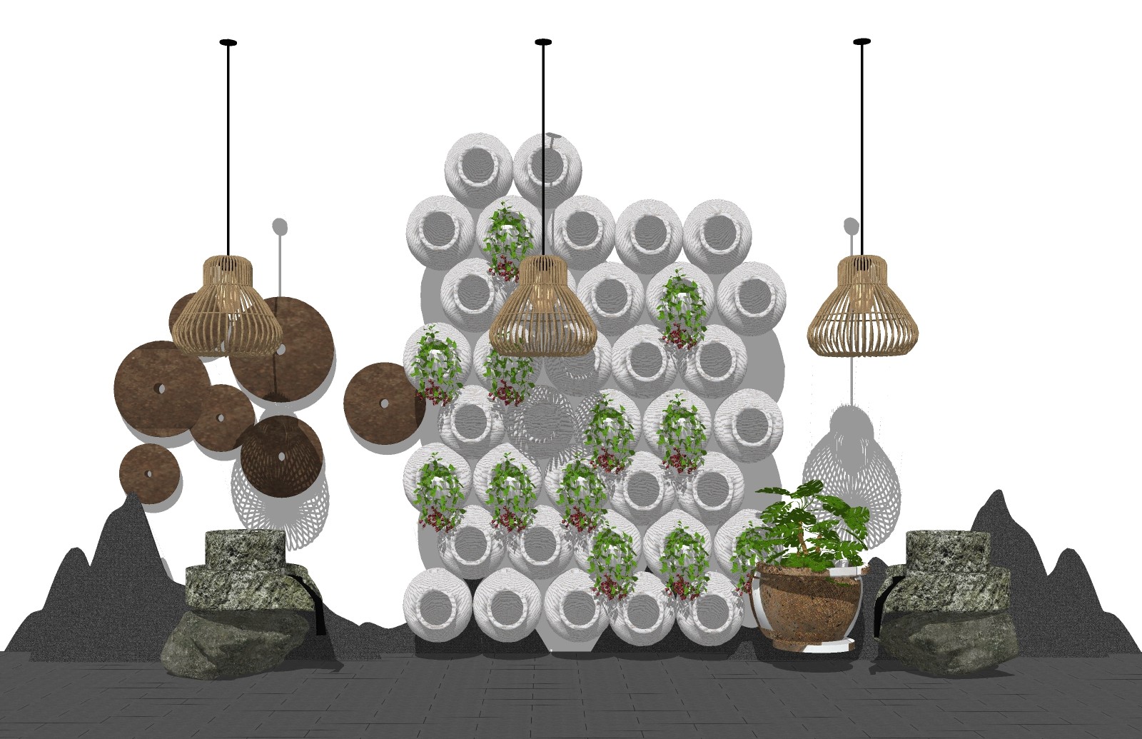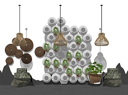 中式枯山水园艺小品草图大师模型,枯山水园艺小品sketchup模型下载