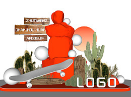 热带logo景墙 商业街雕塑 仙人掌美陈 圆形太阳金属小品 入口雕塑背景板