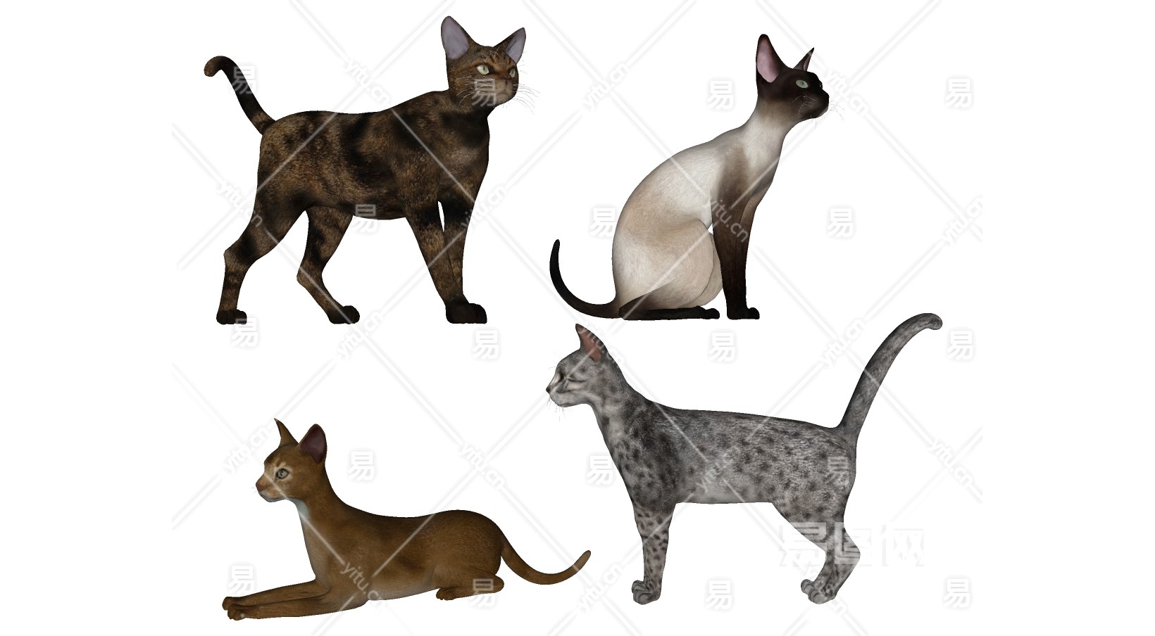 动物宠物小猫咪 斑点猫组合 su草图模型下载