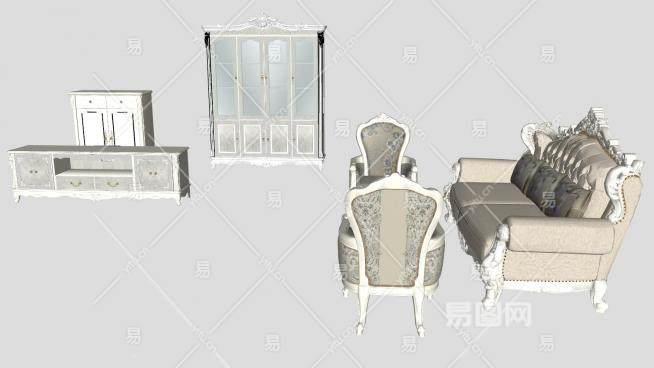 欧式沙发室内家具SU模型下载_sketchup草图大师SKP模型