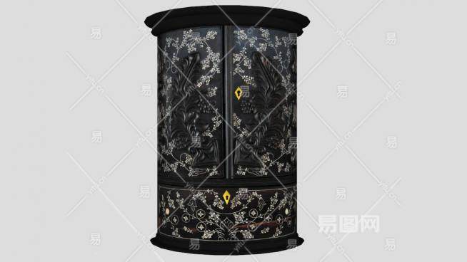 弧形东方柜子SU模型下载_sketchup草图大师SKP模型