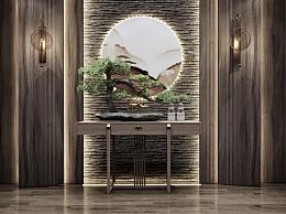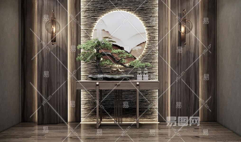 新中式玄关 实木端景台 玄关柜 摆台 摆件盆景