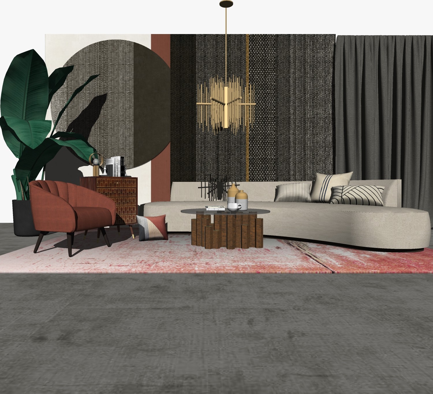 现代布艺沙发组合su模型,沙发组合skp模型下载