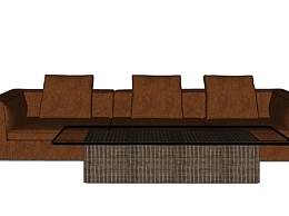 现代皮革多人沙发su模型