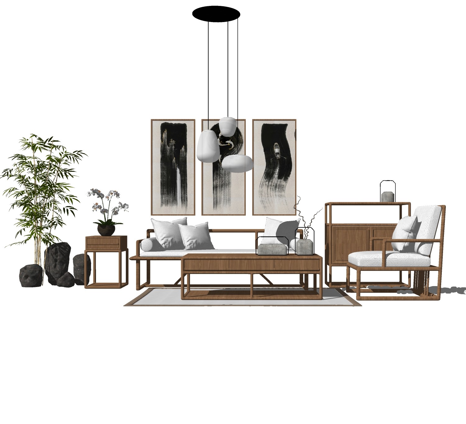 新中式沙发组合草图大师模型,沙发组合sketchup模型下载