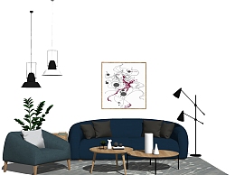 北欧布艺沙发茶几组合免费su模型,沙发茶几组合skp模型下载