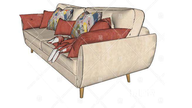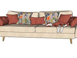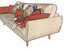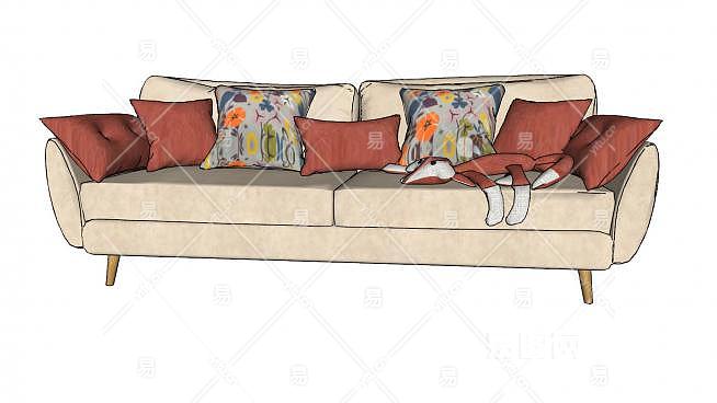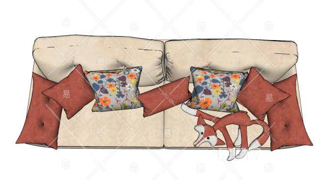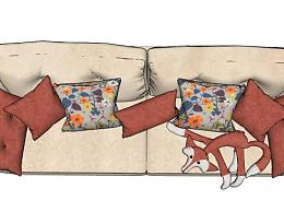 现代沙发狐狸抱枕SU模型下载_sketchup草图大师SKP模型