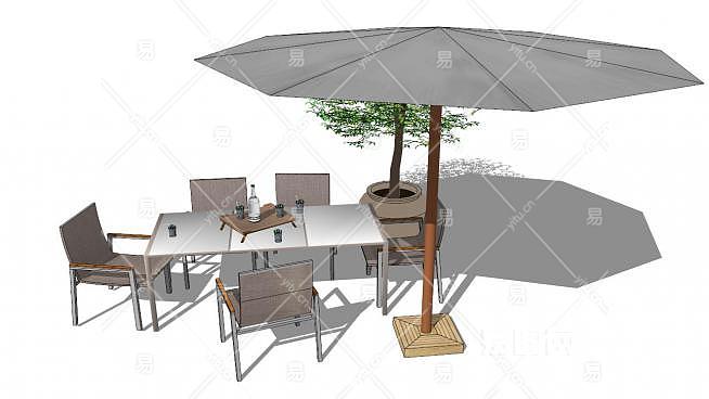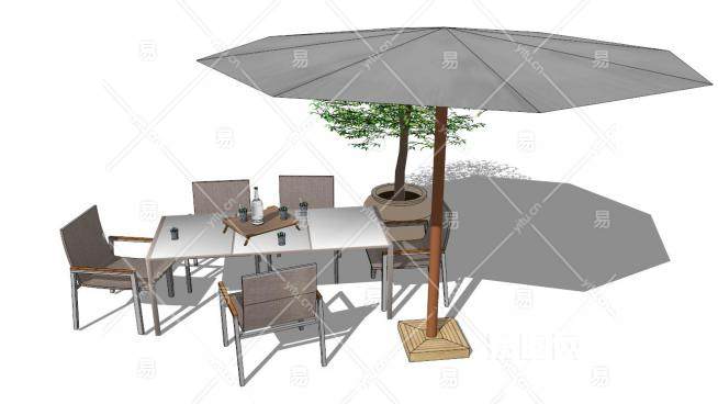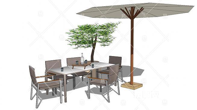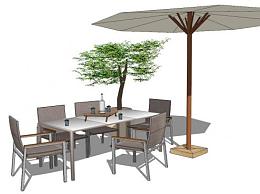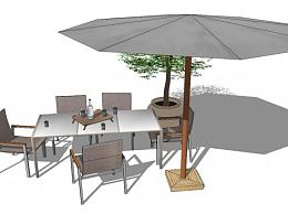 遮阳伞室外休闲桌椅组合SU模型下载_sketchup草图大师SKP模型