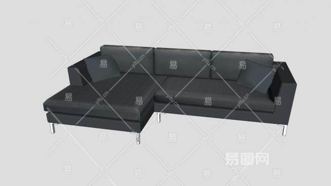 黑色L形沙发SU模型下载_sketchup草图大师SKP模型