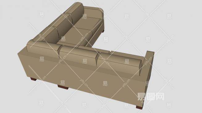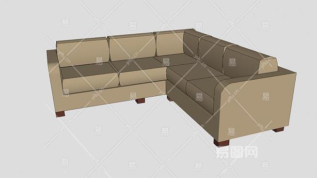 现代沙发土黄色L型沙发SU模型下载_sketchup草图大师SKP模型