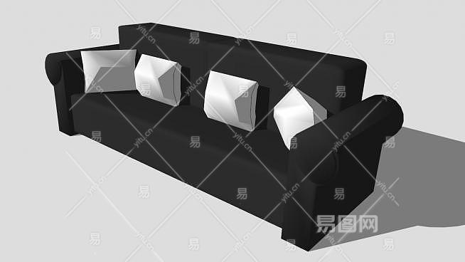 真皮沙发黑色多人沙发SU模型下载_sketchup草图大师SKP模型