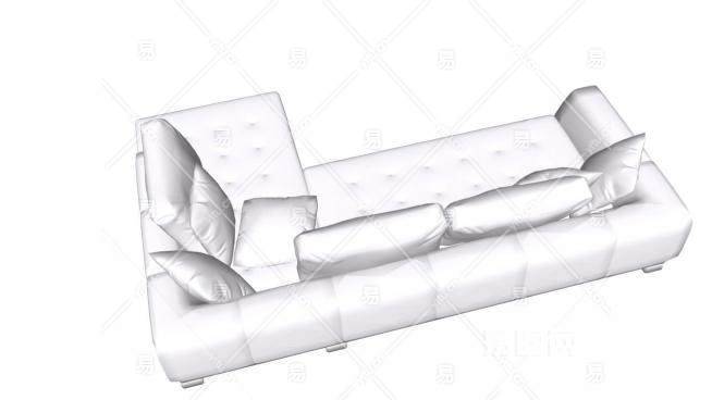 简欧沙发真皮白色多人沙发SU模型下载_sketchup草图大师SKP模型