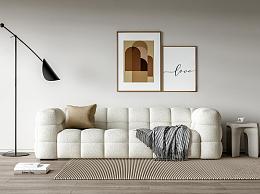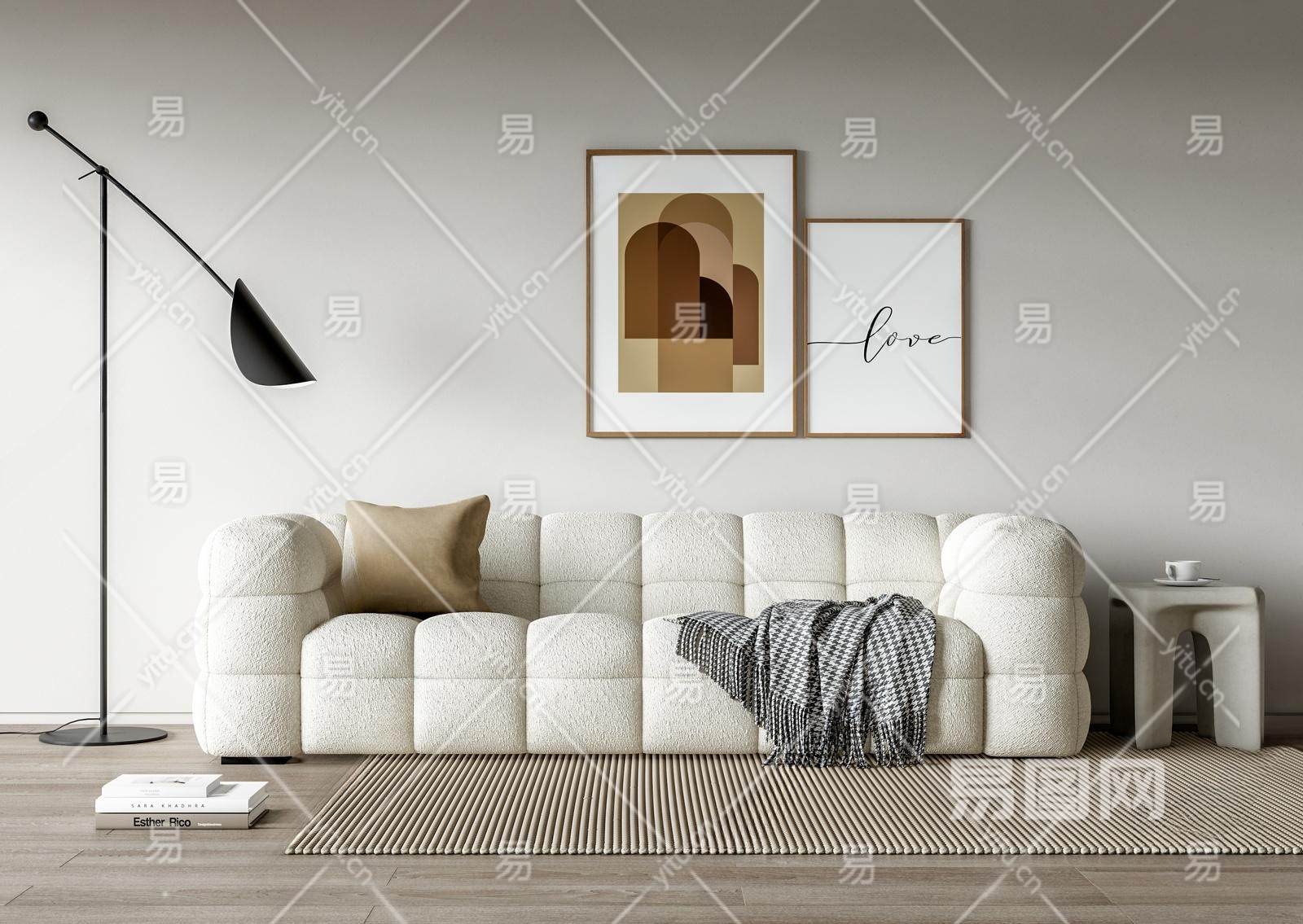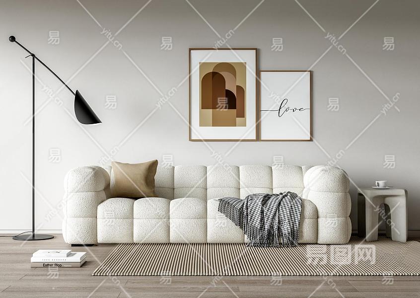 Asiades现代奶油风羊羔绒多人沙发 网红棉花糖沙发 落地灯 装饰画 非转角
