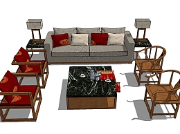 新中式多人沙发草图大师模型,沙发sketchup模型下载