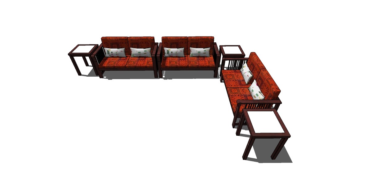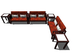 新中式多人沙发草图大师模型,多人沙发sketchup模型下载