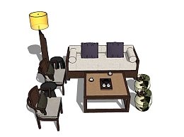 新中式多人沙发草图大师模型,多人沙发sketchup模型下载