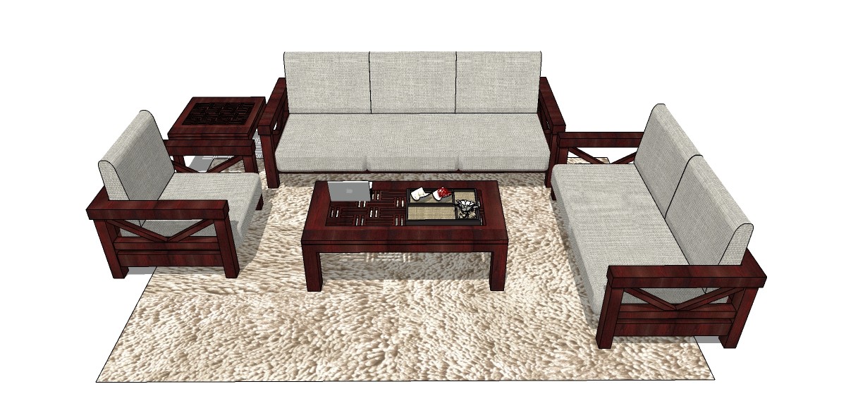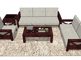 中式多人沙发草图大师模型,多人沙发sketchup模型下载