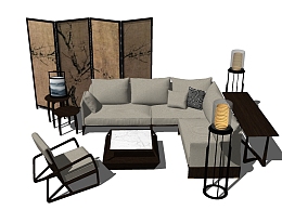 新中式多人沙发草图大师模型,多人沙发sketchup模型下载