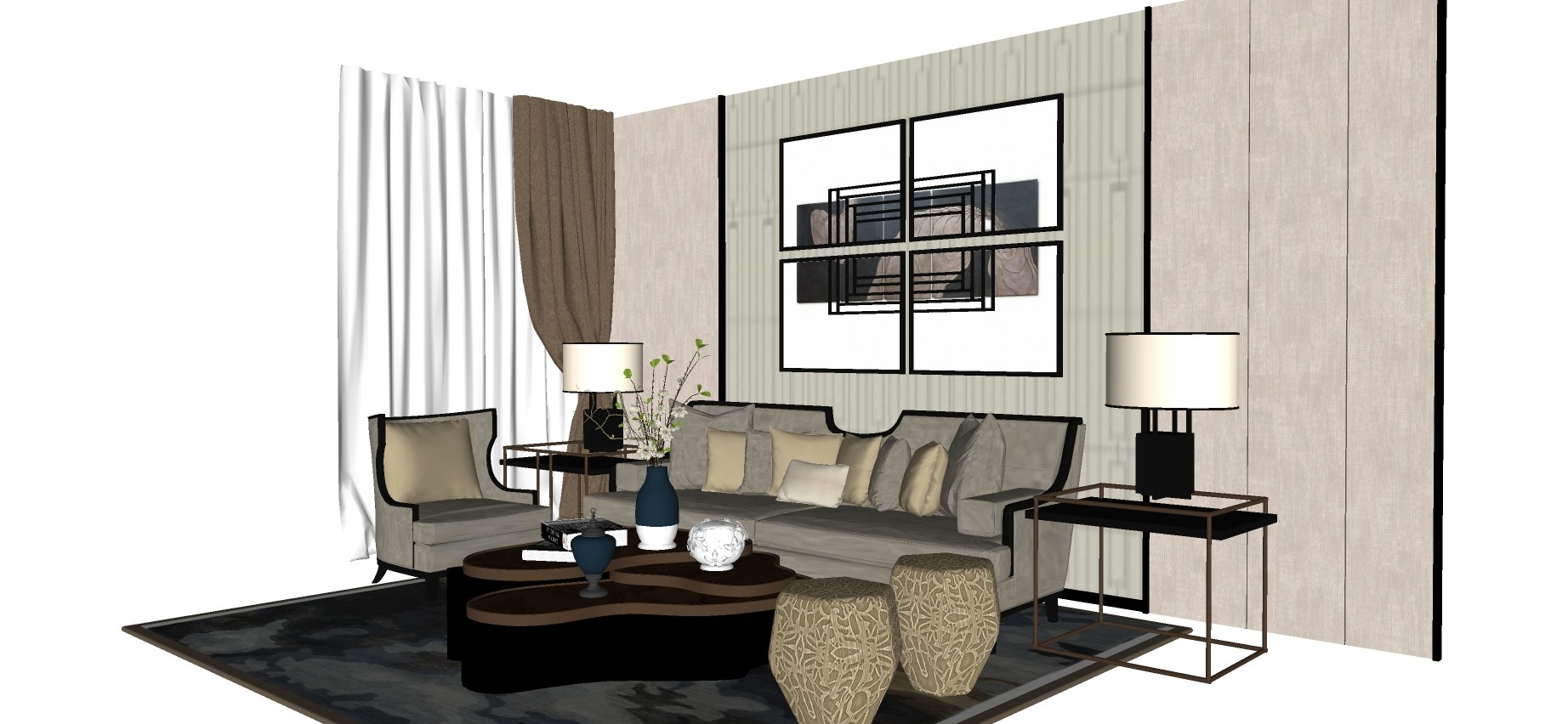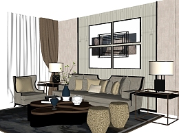 中式沙发组合草图大师模型,沙发组合sketchup模型下载