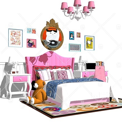 简欧布艺儿童床su模型