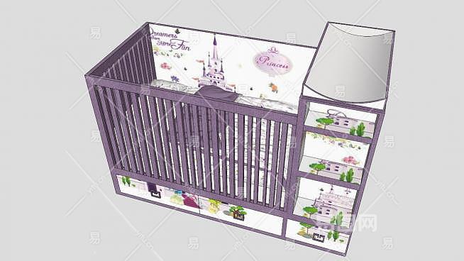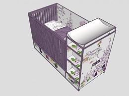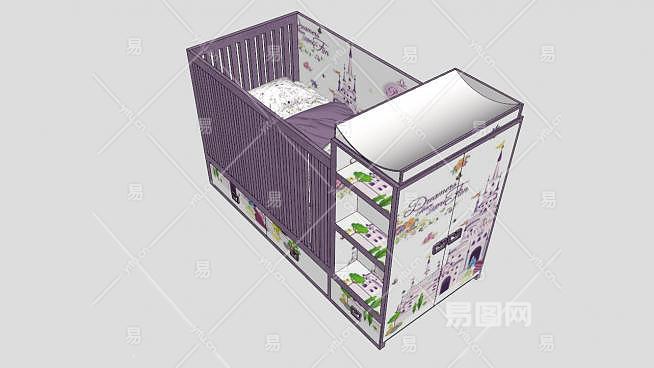 婴儿床衣柜床SU模型下载_sketchup草图大师SKP模型