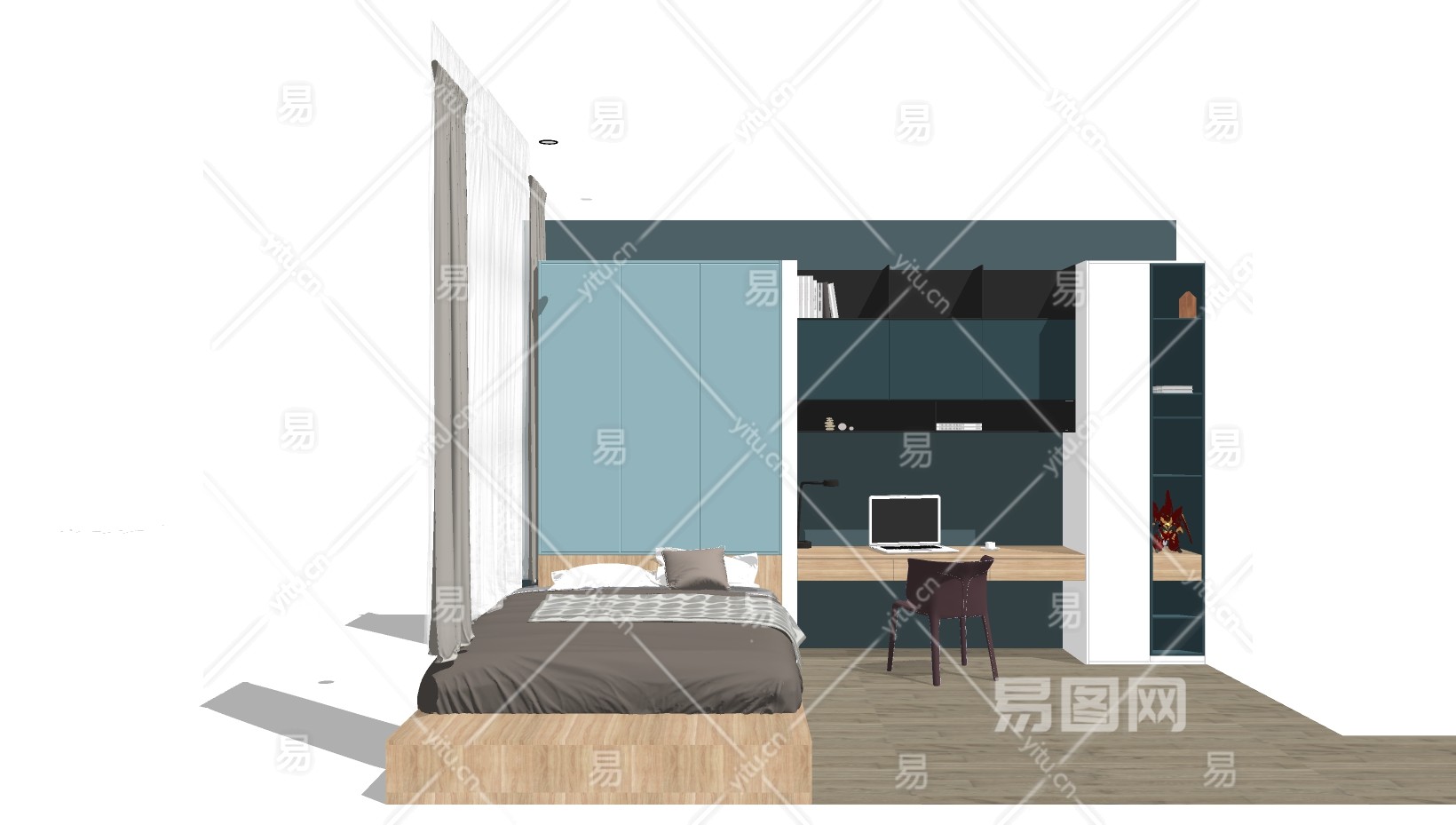 儿童榻榻米床,书桌椅子、su草图模型下载