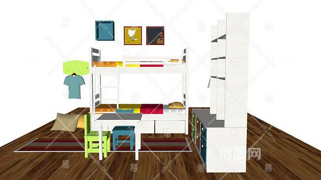简约儿童房家具设计SU模型下载_sketchup草图大师SKP模型