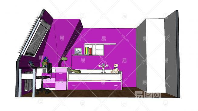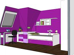 现代紫色系儿童房SU模型下载_sketchup草图大师SKP模型