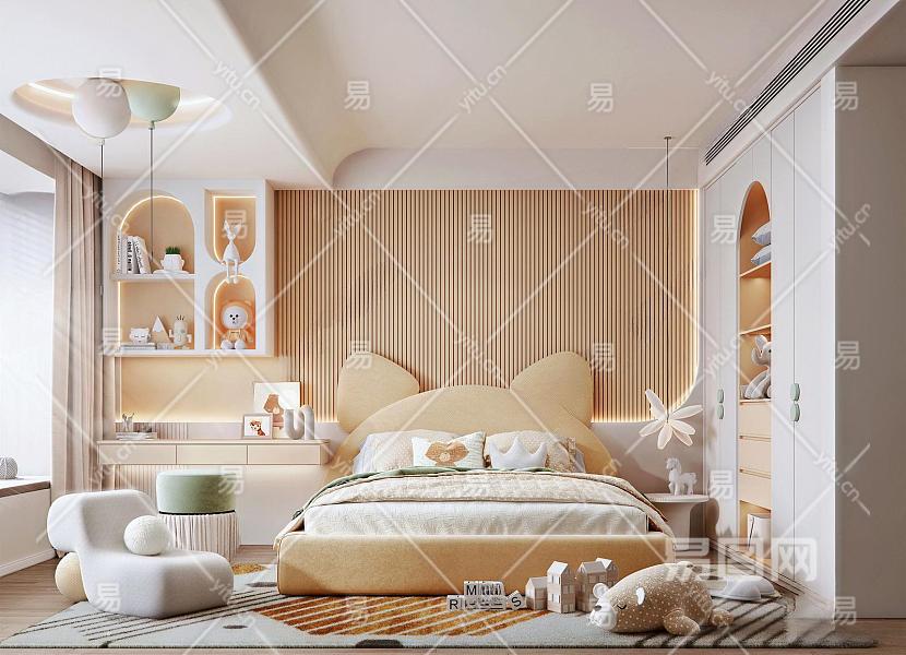 现代儿童房 儿童床 书桌 书架 衣柜 吊灯 休闲沙发 装饰品 玩具摆件