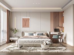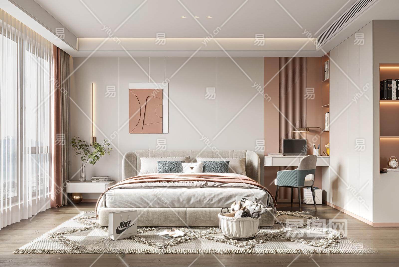现代女孩房 书桌椅组合 床头柜组合 布偶玩具 绿植 饰品摆件