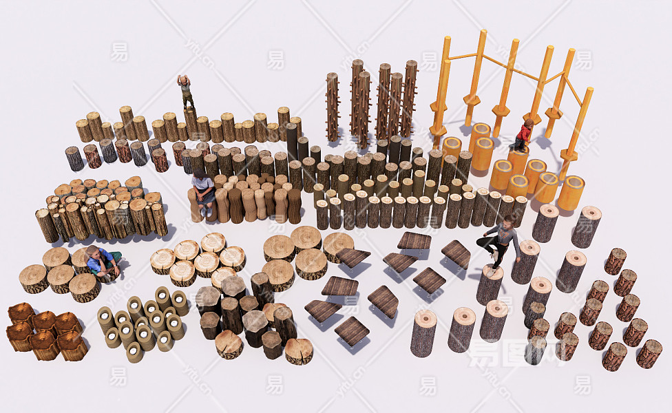 树桩圆木 木桩木段 木头木材 儿童区木桩设施 园路道路木桩