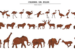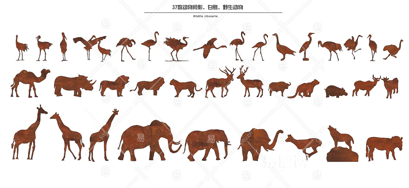 现代野生动物剪影 白鹭水鸟鸟类锈板 大象 长颈鹿