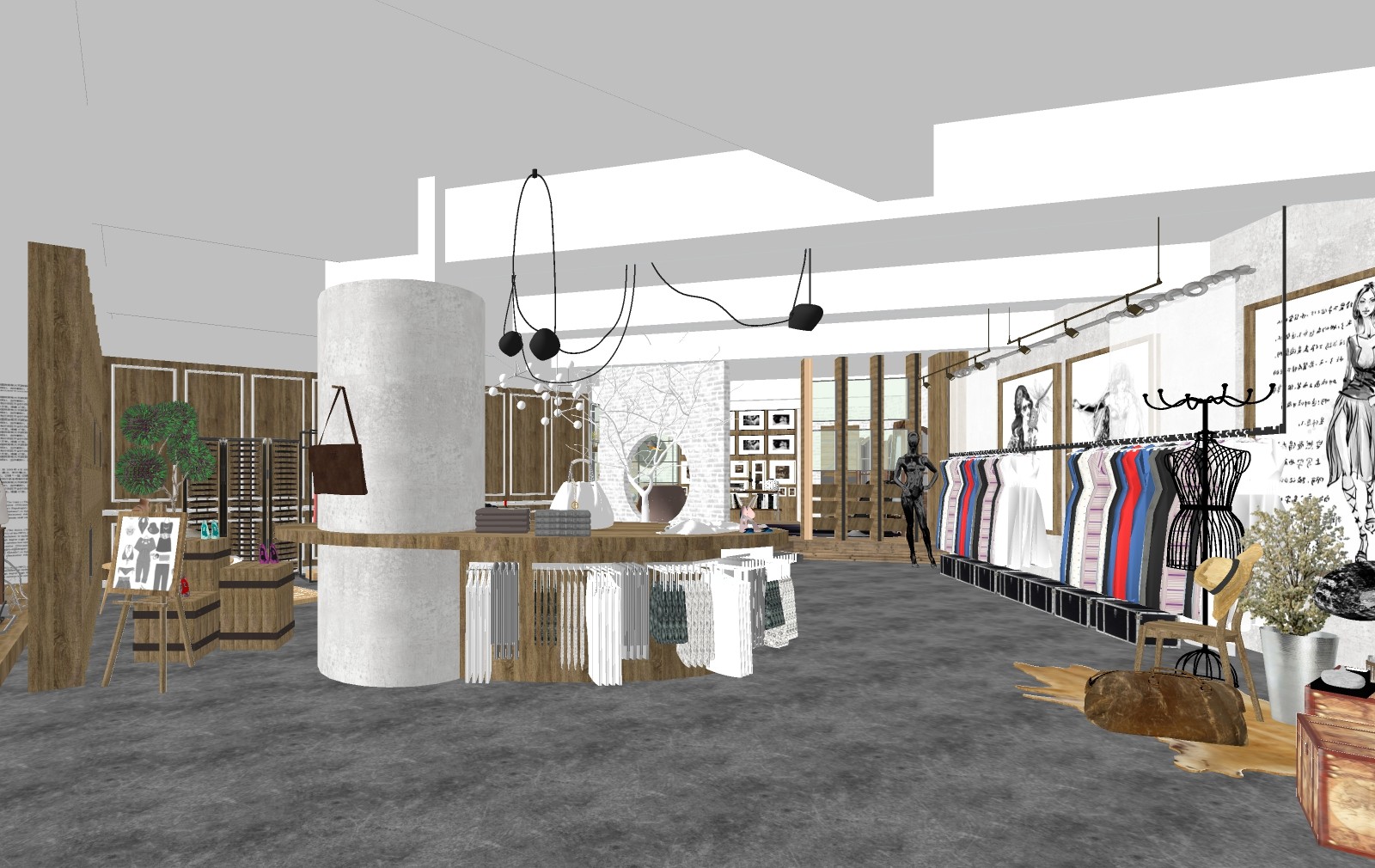 现代loft服装店草图大师模型,loft服装店sketchup模型下载