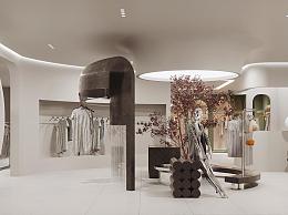 侘寂风女装服装店 服装货架 模特假人 DP堆点美陈 植物