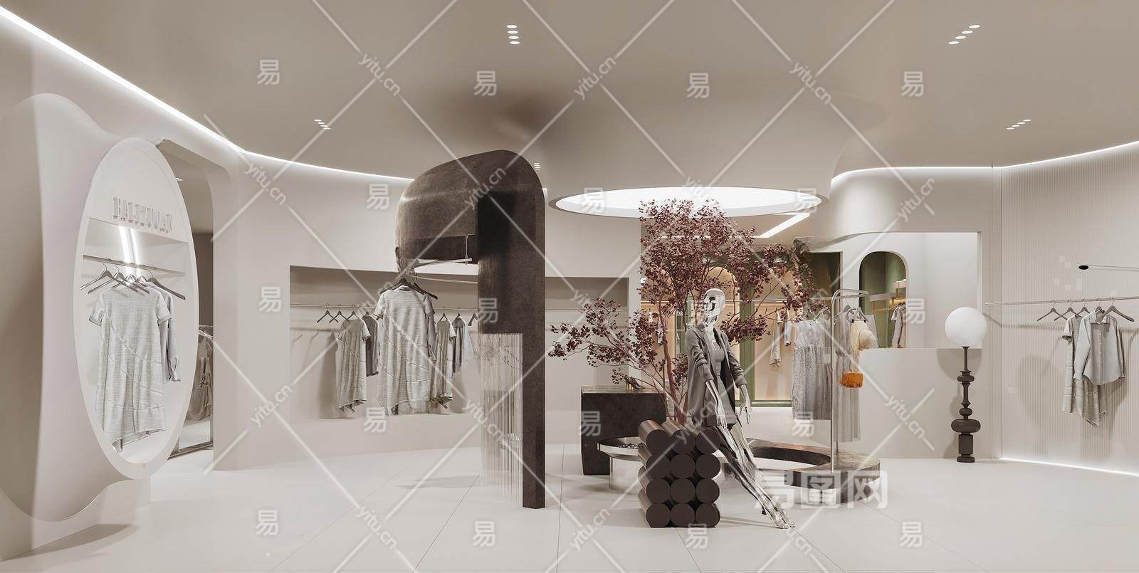 当前的位置:首页 > sketchup > sketchup模型 > 商业空间 > 服装店 > 侘寂风女装服装店 服装货架 模特假人 DP堆点美陈 植物