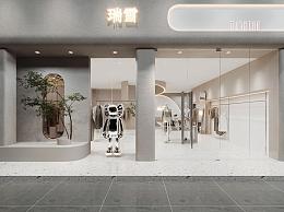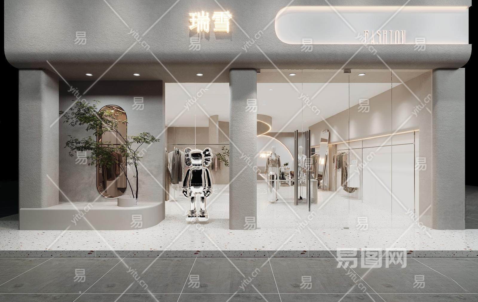 侘寂风女装服装店 橱窗美陈 模特 服装货架 中岛展台