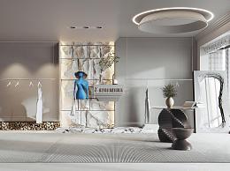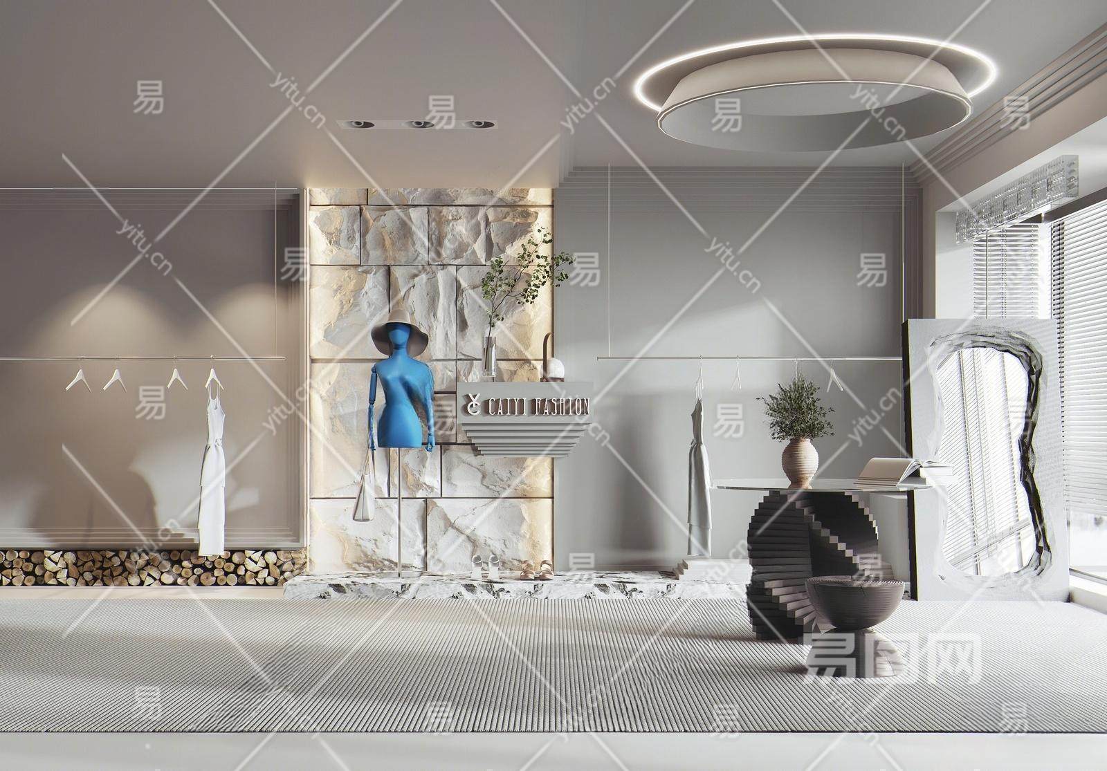 侘寂风女装服装店 石墙 装饰落地镜 模特假人