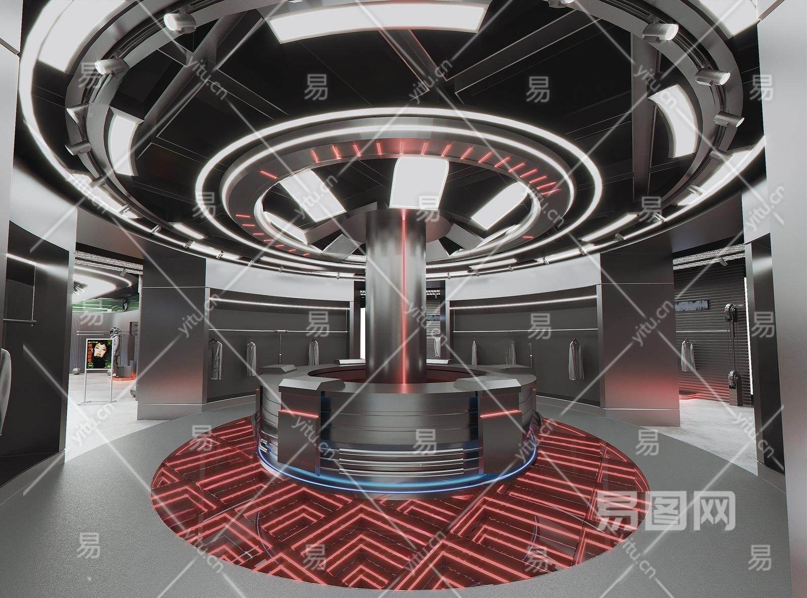 现代潮牌服装店 科技风前台收银台 服装货架