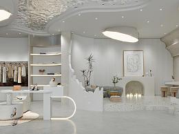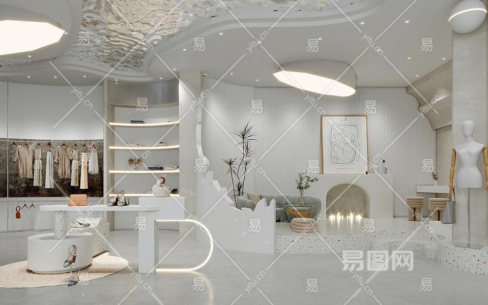 侘寂风服装店 女装店 服装货架 中岛 模特 展台