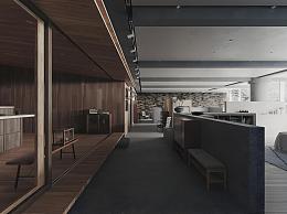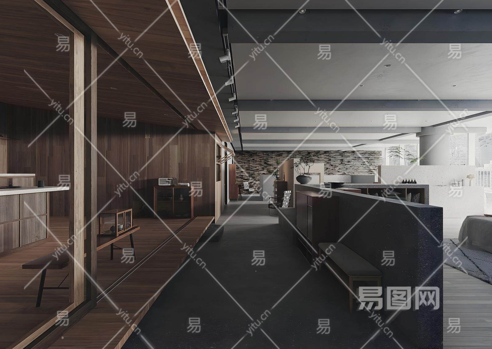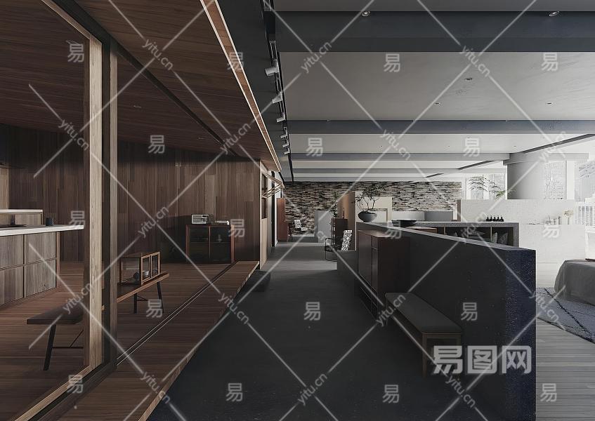 侘寂风格买手店 桌椅组合 展示架 休息区 景观盆栽