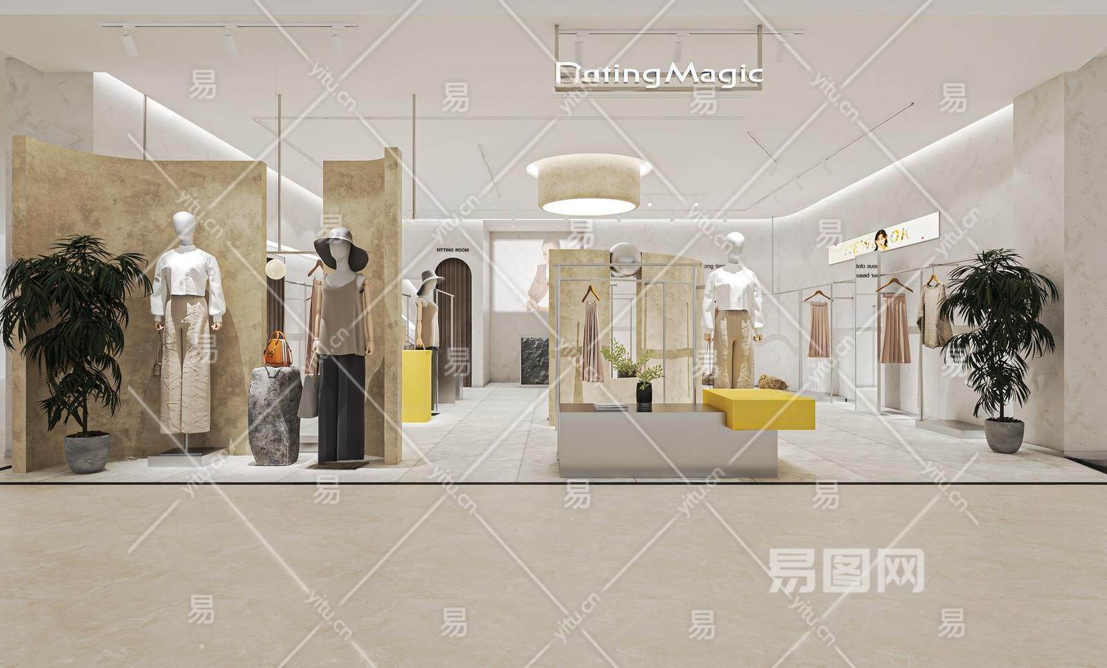 现代服装店 女装店 异形展柜 试衣镜 中岛展台