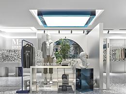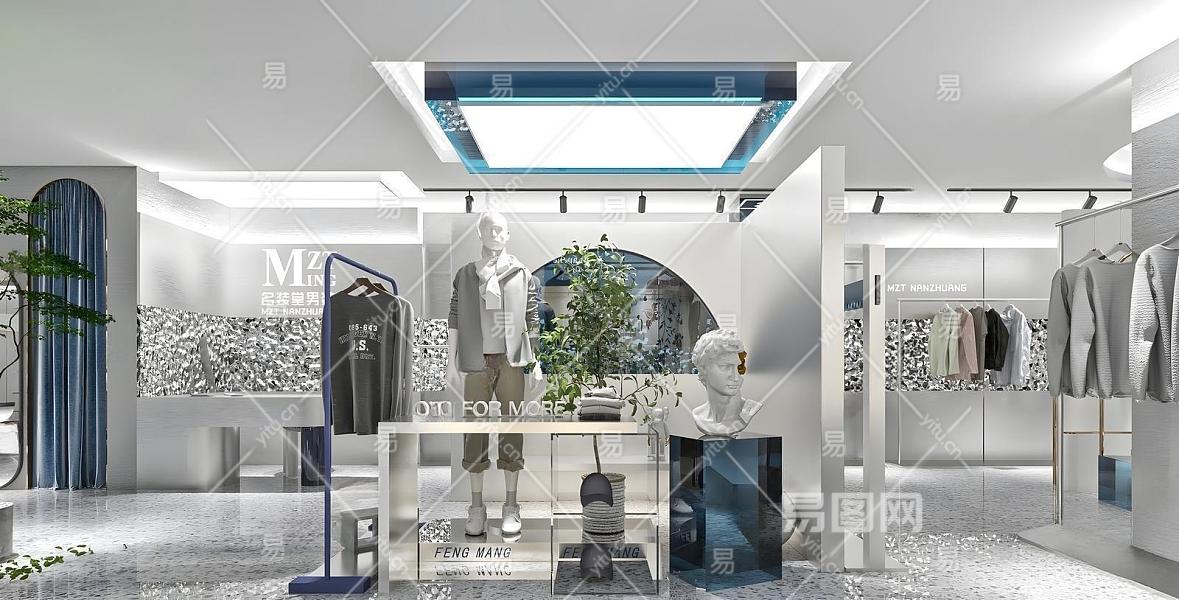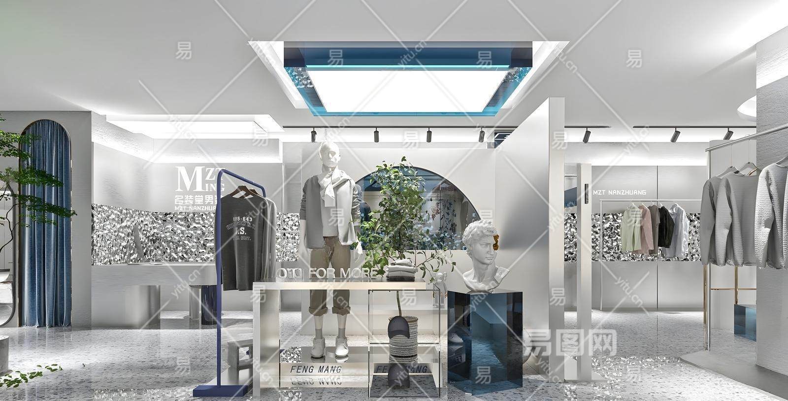 现代服装店 服装展示区 模特 石膏 绿植 衣服 更衣室