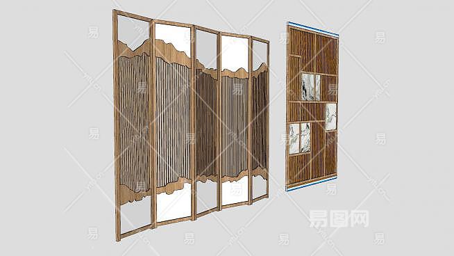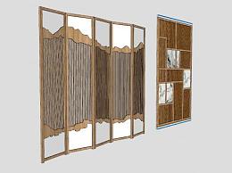 新中式文化韵味的隔断屏风SU模型下载_sketchup草图大师SKP模型