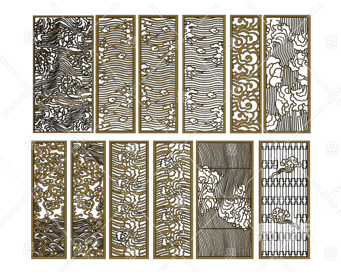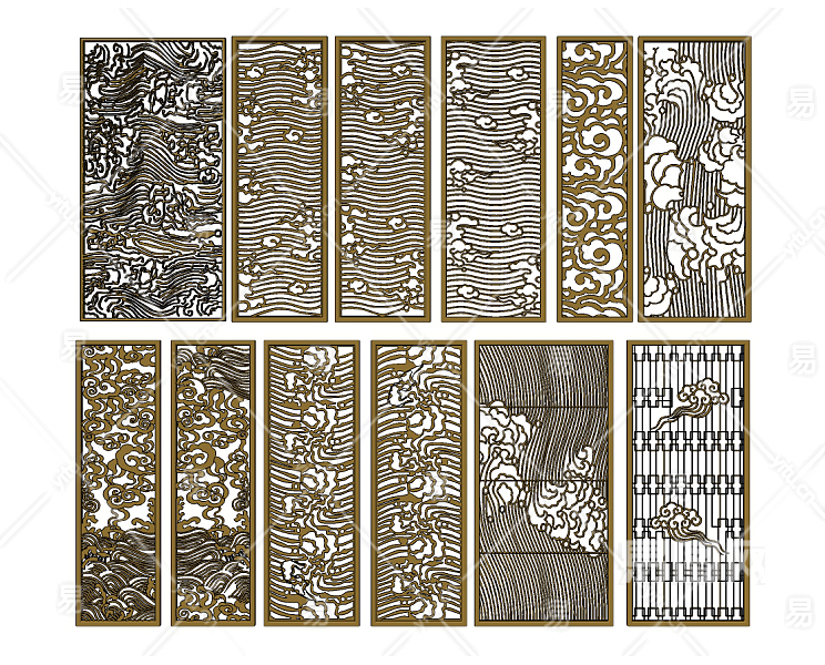 新中式云纹祥云屏风,隔断花格su草图模型下载