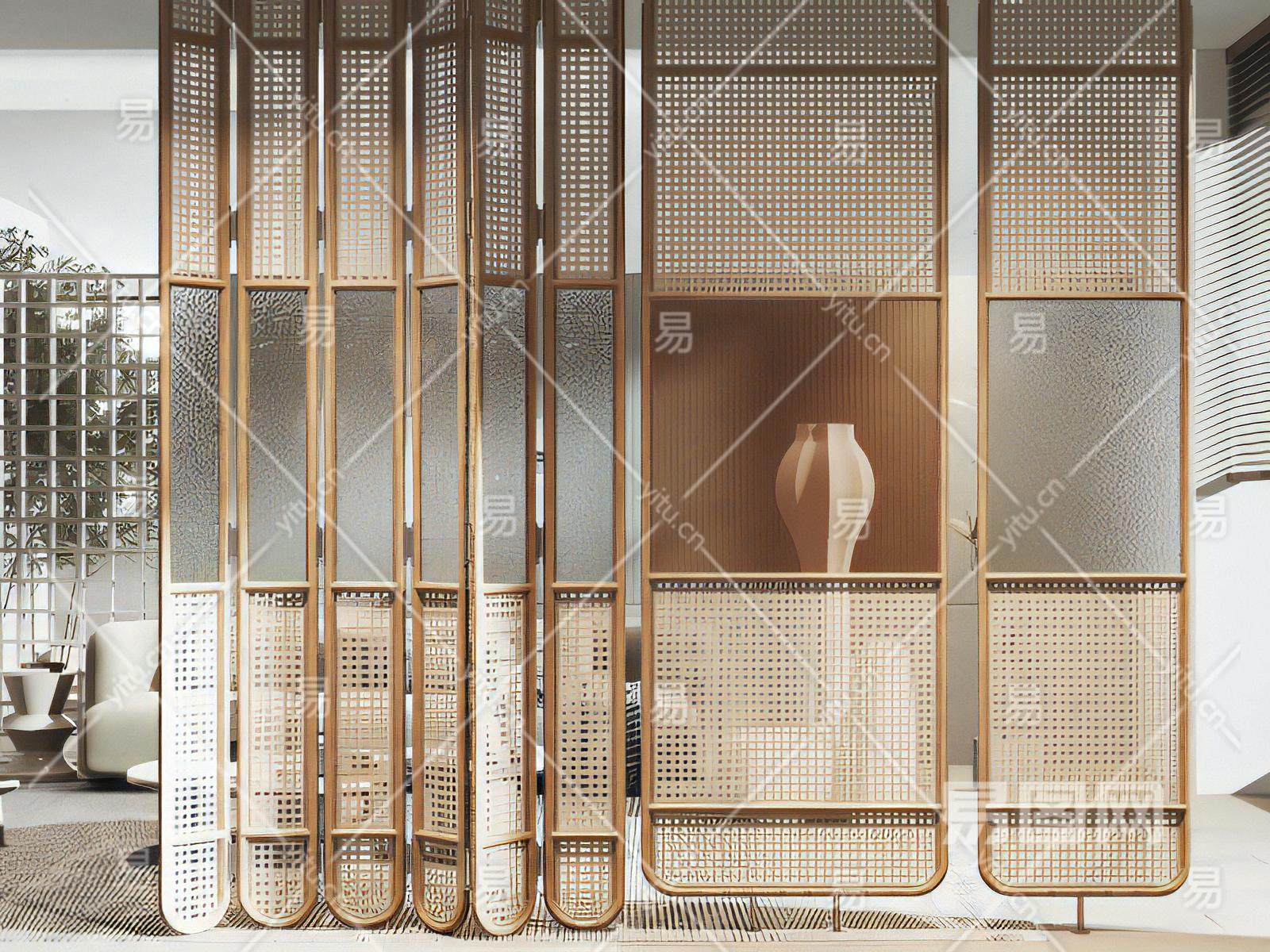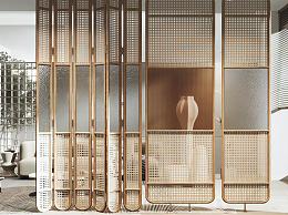 侘寂风编藤屏风隔断