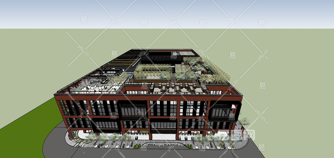 67工业风格厂房改造 屋顶花园,文创中心厂房,文化艺术中心,文化产业园,产业园区,红砖厂,艺术文化街区su草图模型下载